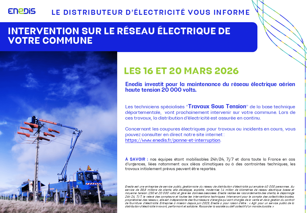 Enedis vous informe : travaux sous tension sur votre commune